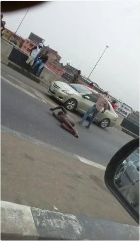 The man stripped himself and was seen lying in the middle of the road. The development led to a massive gridlock for motorists at about 11:30am. SEE PHOTOS BELOW: